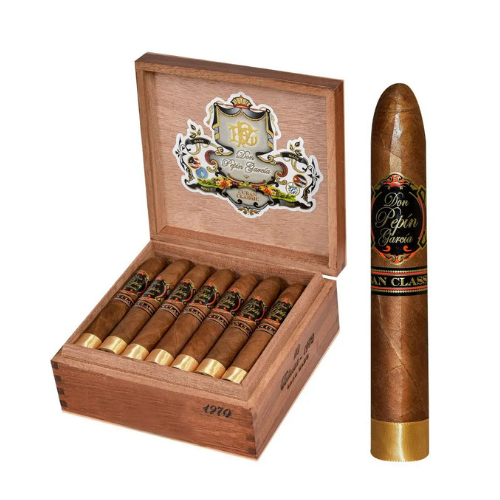 Don Pepin Garcia Black 1970 Belicoso, “Cuban Classic” adıyla da bilinen, Don Pepin’in Estelí/Nikaragua’daki fabrikasında üretilen özel bir purodur. Tümüyle Nikaragua tütünü kullanılarak el yapımı olarak hazırlanmıştır. Cor ojo 99 sarma yaprağı, bindirme ve dolgu olarak Nicaraguan tütünlerden oluşan bu puro, zengin aromatik profiliyle öne çıkar