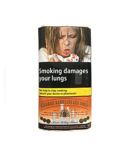George Karelias and Sons Hand Rolling Tobacco 50gr, %100 doğal, katkısız ve elle sarıma uygun yüksek kaliteli Yunan tütünü. Yumuşak ve dengeli içim sunar.