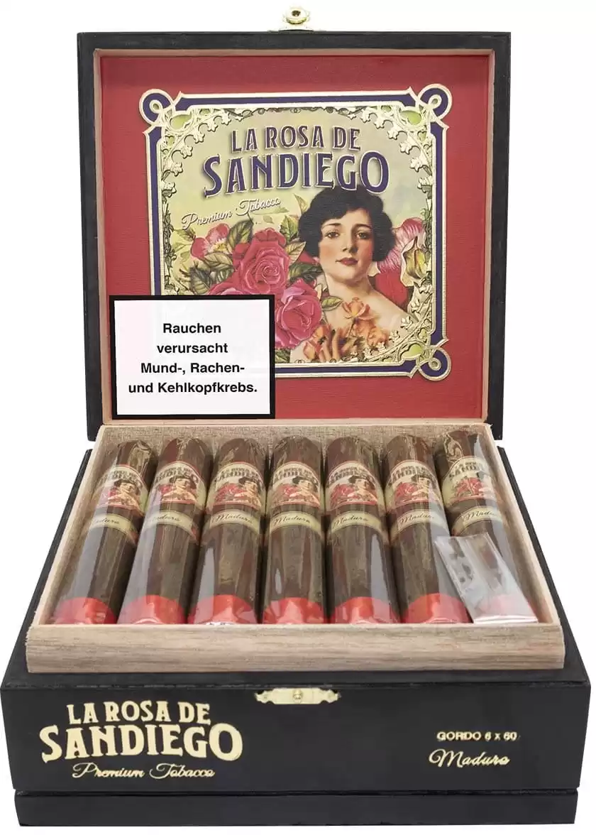 La Rosa de Sandiego Maduro Inmenso Gordo 20’li Puro, güçlü Maduro sargısı, yoğun aromatik profili ve uzun soluklu içimiyle puro tutkunlarının vazgeçilmez tercihlerinden biridir. Eğer dilersen, diğer La Rosa de Sandiego serilerini de aynı formatta hazırlayayım mı?